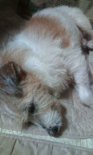 茶々、チョビ犬はお留守番。やっぱりよく寝てます……。