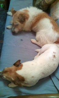 久々のお天気にちょっと前まで日向ぼっこしてたのに いつのまにかおそろいで お昼寝してます。 お年なので 寝てる時間が多くなって なかなか遊んで貰えない私…お知り合い いやお尻あいの 両ワンコ を 眺めているだけ。。。