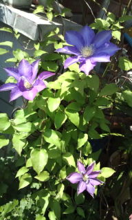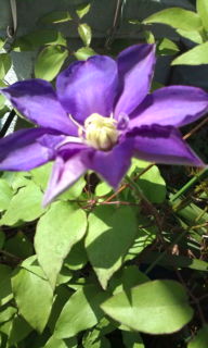 洋裁の教室に向かう朝 てっせんの花が一つ咲いてました。 やはり何時もの年より 小ぶりです。