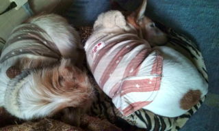 自分のハウスに入りません、なぜか この頃くっついていることが多い、このほうが暖かいのかな、いつもなら よるとさわると 牽制しあったり、ちゃちゃU^エ^Uネェさんに 怒られたりするチョヒU^エ^Uも警戒無しで丸くなっている。 ちゃちゃ、自分のハウスが空いてますよ、、、 ネコみたい……。
