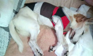 洋服着てないと 首輪ぐらいしたほうが キリッとしますょ でも 服は嫌いじゃないみたい これから着替えです、、、