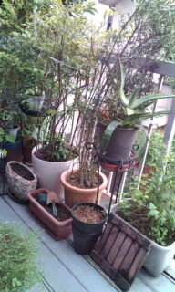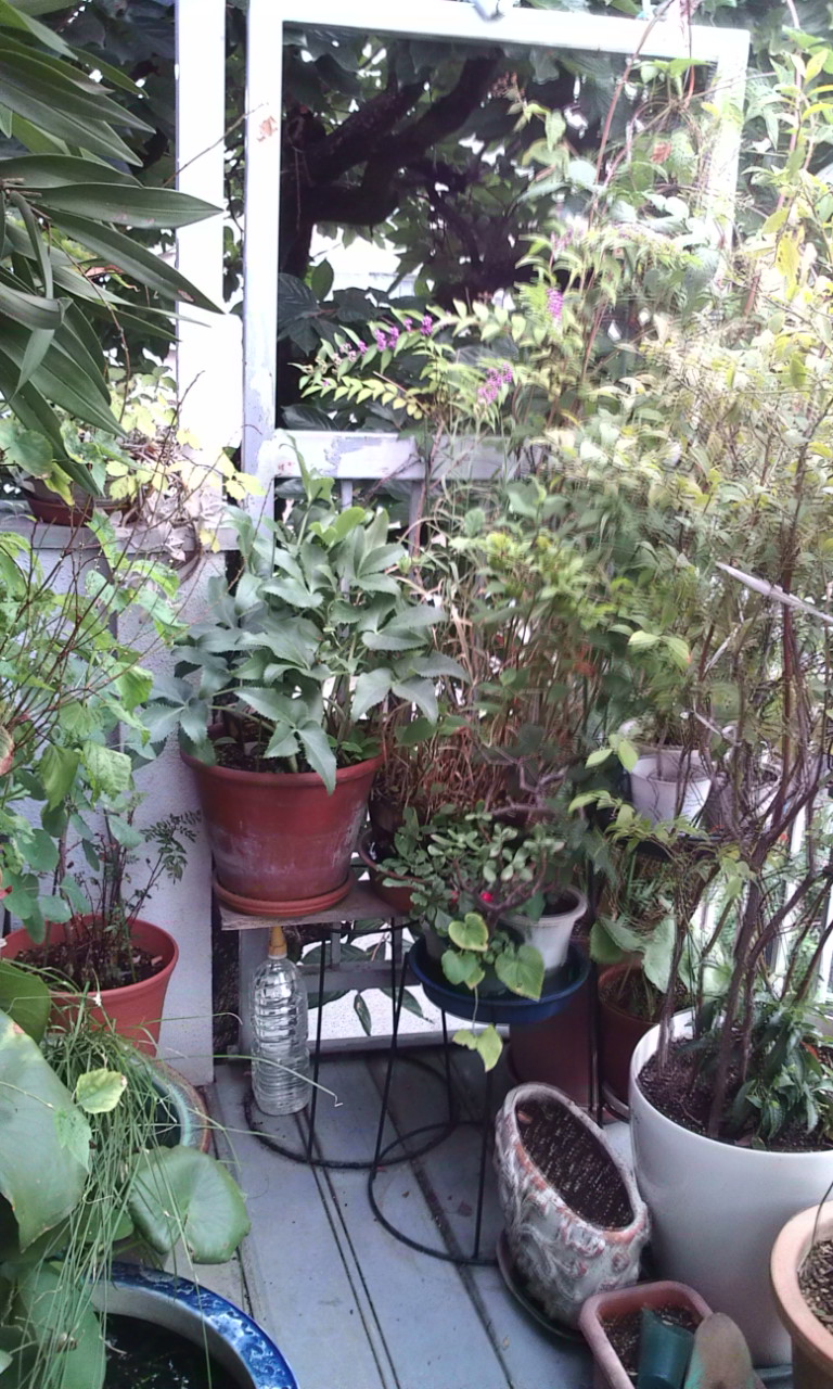 ベランダの手すりの ペンキ塗りかえ業者さんに見てもらった、植木が多いので 暫し移動しなければならない、防水工事が済むまで移す場所すら思案が必要な狭い家、 少し減らす事から始めましょか…、、、