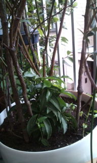 庭木のブルーベリー、今年は実付きが良くなかったし鉢が窮屈そうだったので 気になっていたが やっと植え替えた、根本に植えずして芽を出した万両の木まで そっくり移した。