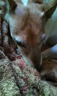 朝 ワンコ達の散歩でえん家に立ち寄った時、既に檻は無かったが ニオイを察したチャチャ チョビU^エ^Uのクンクン反応はすごかったらしい、、、 今は暑さとお年のせいか すっかり落ち着いて お休み犬 になっている。