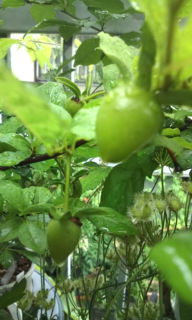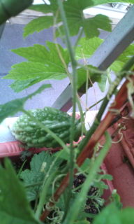 今年もゴーヤが実り始めて朝ご飯のおかずに 登場近し、、、