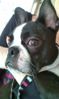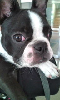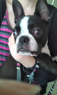 初対面ー、 ボストンテリアのマハロちゃんに会うことができた、甘えんぼな動きがたまらなくカワイかった。