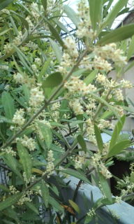 梅雨入り間近のこの季節 オリーブの花が満開になっている。