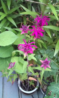 今年もユリが咲き始めました。 オレンジ色先行、、、 ユリの脇にあるベルガモットが色を加えて花畑っぽくなりました。