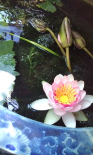 昨日、岩手八幡平市の集まりで市の物産販売品を買ってきた、やはり南部せんべいは欠かせません せんべいかじりながら メダカ鉢を覗くと 今年最後であろうと思われる睡蓮が咲いてる、 そうか苦瓜・ゴーヤだって花が咲きだす時期になってきているんですね…。