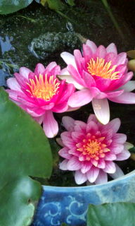 雷 に震えていた犬は雨がやんでやっと平静を取り戻し テレビを見ていた……ん?…こんどは風が出てきた! 風に乗って 花の香りがする。 睡蓮も花の数が増えているし 季節はまた移って あぁ…夏が近いんだなぁU^エ^U。