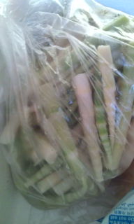田舎のRちゃんから竹ノ子(ねまがりたけ)が届いた。早速そのまま少しわさび醤油でいただいて、、香りや鮮度を楽しんだ。ふるさとの野山が浮かんでくる。 いつも ありがとー、‥
