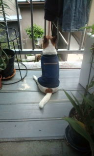 植木を植え替えようと思ったけれど どこから始めたらいいのか思案しているうちにまた雨が降り出して 結局日延べすることにした。 その後 雨も上がり…、もうその時は結構な時間になってしまった。 あきらめのベランダ先で のーんびりと表を眺めている犬一匹 、少しはこのベランダを広く使う工夫の方が大事かな? ……。