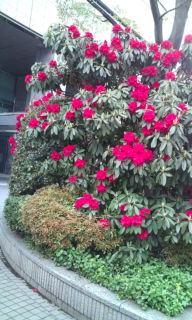小雨降る中、今日は中野に出かけた サンシャインを右に早稲田通りに向かう途中、どんよりした空の下で一際派手な赤い色が目に入った、西洋石南花の花だなぁなんて思いながら歩いた、今度は丸井グループビルの前で同じ赤い花が咲いている、これは撮るしかないわけです。 カナダの公園やバンクーバーの街のシャクナゲを思い出した。
