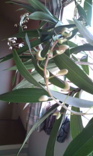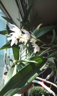 室内の小さな欄の花が咲き出した。甘い香りで花が開いているのに気づいた。