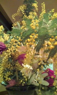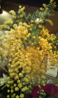 久々に顔を見せたHさんが ミモザの枝を抱えてきてくれた。 自宅の庭のミモザの木で例年より遅めの開花だそう。 花を愛でるもよし、思い出話に花を咲かせるもまたよし…。