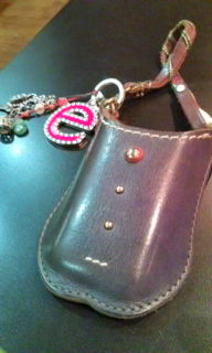 ケータイの下げケースです。中身は使用中…受信はできているが こちらから送信できない、そんな時って結構焦る。 ショップに行って難無く復帰、、たまにこんな事が起こる時があるそうだ、「ご心配なさったことでしょう 申し訳ありません、」で、ちょっとした故障でも慌てふためく 機械音痴の自分がちと恥ずかしい。