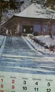 昨夜の霙まじりの雪の後、周りは雪化粧と云いたいけれど ベタ雪となり… カレンダーの平泉の雪景色、寒くてもこれが 私の思う雪景色…なんですョね。