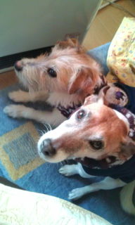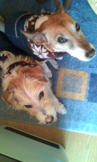 心配していたチャチャ犬の歯茎の腫れも完全にひいてまずは 一安心といったところ チャチャばかりに声をかけているうちに いつの間にか形勢がチョビ優勢か!! しっかりといいポジションはチョビ夫に奪われてしまっている。