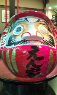高崎のだるま …願掛けの目を片目入れたけれど も 知らずに左目を黒く塗っていた。間違いだそうで右目なんだそう…お恥ずかしい、(/_;)