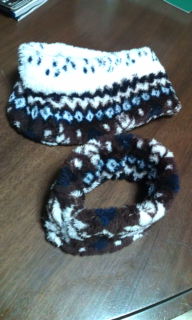 ワンコ達に襟巻をつくったら 「俺にもおそろのネックウォーマーが欲しい」と申しますので ついでにつくりました。 今日の仕事でした。