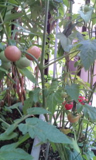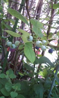ミニトマトもブルーベリーも ひとつ ふたつと色付き始めました。 鳥たちに取られないうちに 自分たちの口に入れましょう