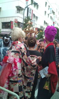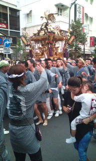 家の向こう隣の奥方はジャズダンススタジオを経営する振り付け師でもあるダンスの先生、今日は二年に一度の発表会、前に見てとても楽しかったので期待して出掛けた。 吉祥寺前進座劇場に着いたら沢山の人が並んでいる。開場と共に一番前の席に陣取って振り向くと満席状態で人気を確認した、 出演者は子供からかなり年輩の方々までバラエティーに富んだ楽しい発表会、期待に十二分に応えてくれた発表会に 満足 満足… 帰り吉祥寺をぶらぶらしながら祭りに遭遇、、、これまた親近感の湧く不思議に魅力ある音頭とりの歌に足を止めた、御輿の担ぎ手もなかなかいい、…。 ダンスは撮影禁止なので 祭りの写真になりました。