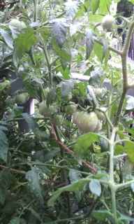 雨上がりのトマト、三十個近い実を点けている、、、未だにトマトを実らせた事がないので赤くなるまで心配…。 これが収穫出来るようになったら サクセス! 成功なのだけれど…。 今年こそは、と、見守っているのです。