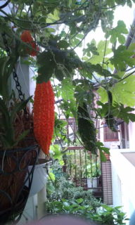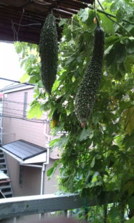 ベランダの植物達に水やりをお願いしていて帰ったらなんとなんとゴーヤはブランブランと実が下がって大きく育っている! トマトも大きくなってよく育っている! 私より上手く育てていて下さいましたー!