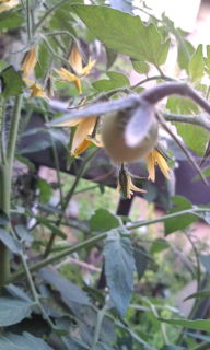 花は咲くけれどなかなか実にならない と半ば諦めてたが 発見した、、かわいいトマトの青い実、