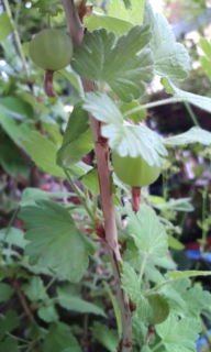 スグリの実は 数は少ないけどちゃんと落ちないで 子供の時みた あの青い実が点いている。もっと大きくなるまで収穫は待つ、、。