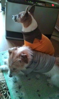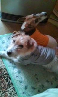 忙しい年の暮れ、掃除を少し終えて 今晩あたりから天気が崩れそうな予報なので早めに洗濯物を取り込んだ、 窓を閉めて、さーお茶でも と 思ったら足元で暖を遮っているものたち チャチャ チョビが私より先に休憩タイムに入っている。 マッタリとしてまどろんでいる…いいわねぇ…。 私は今 犬になりたい(o^_^o)