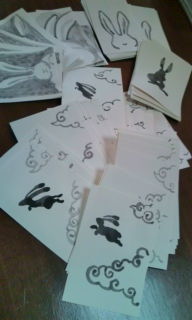 年賀状 やっと下絵が終了、これから着色…等々… 結構な仕事です。 気持ちを込めてット…。