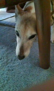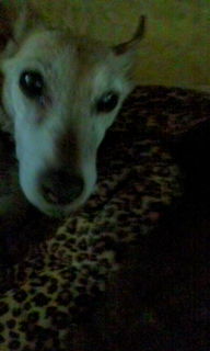 寝たふり老犬はハウスから出ません、画面が暗い写真でごめんなさい。