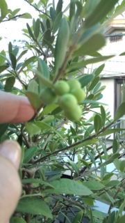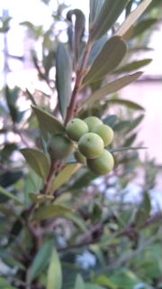今年始めて花が咲き、たった一房だけオリーブの実が点いた、少しずつ大きくなってはいるけれど、成長には時間がかかりそう……。