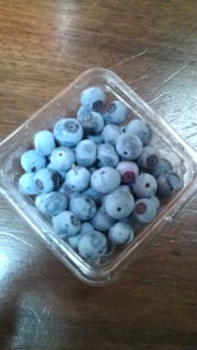 ブルーベリーの収穫は続いてます。暑さの中ヒヨドリたちがこの実を求めて飛んできたので慌てて収穫した、と、云うわけです。