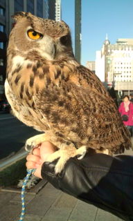 銀座松屋前で フクロウに会いました、 カワイイ!