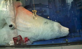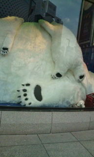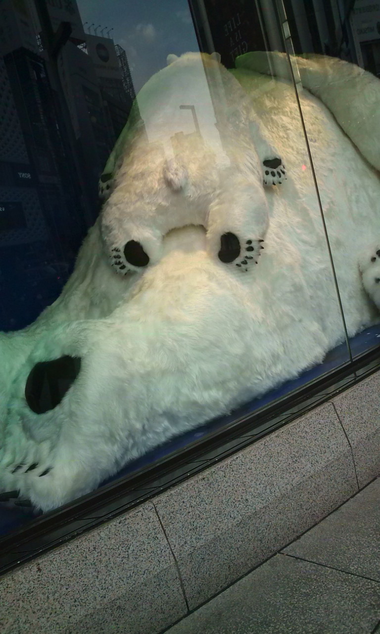 和光のショーウィンドウに大きなシロクマ! あまりにもカワイくて 写真撮ってたら 後ろから中国人の女性に 何やら文句を云われました 。 スマホ持って前にいる人たちを退かしてほしいらしい、
