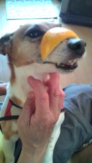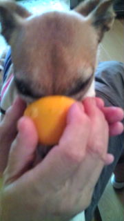 みかんの皮で遊んでるのはちゃちゃではなく…、…、どちらが遊んでもらってるんだか、U^エ^U