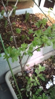 芽吹く季節新芽を嬉しく思った挿し木のスグリ、小さいけれど根をはったようです。