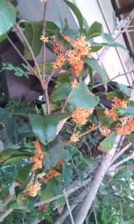 我が家の玄関先にも 秋を知らせる金木犀です。