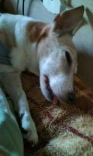 食べる時だけは しゃんとしてます、あとは 寝たふり老犬 よく夢をみるようです。舌だしてます、歯もだいぶ 抜け落ちてるからでしょうね、 U^エ^U
