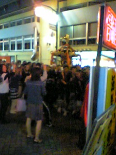 街の祭、我がスターロード商店街の神輿が通る店の前、 家を出てみると周りは祭ムードで包まれて賑やか、お祭りフルコースをと思ったがやはりゆっくり座って食べたほうがいいと考え直し少し歩いてみる。