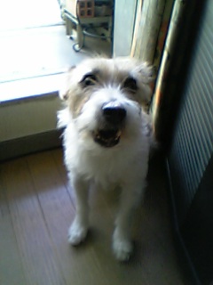 洗濯機に足を上げ粗相する癖があるチョビ・耳の掃除するとリベンジの悪さをする。「あーっ、またやってるー」叱られる事が解ってるので逃げ回る、が、すぐに見つかり、「ごめんなさい」 だが反省している顔ではない・・・。