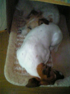 一個しかないお気に入り段ボールハウスに重なる様に入りこんでさました。