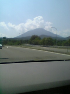 車内から撮った岩手山、晴れた青空に秋風さえ感じます。 さっき岩手を通過して宮城にはいりましたが早くも渋滞です。今日中に帰れるといいのですが、-。