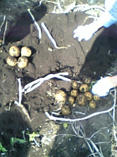 友人の畑でジャガ芋を収穫、もちろんそのまんま東京に持ち帰りです。なんかおいしそう!だからかな?いくつかはモグラさんに噛られてました。