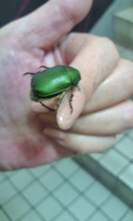 お店の階段に黄金虫、玉虫色の輝きで静かな佇まい 暑い中ホッとした瞬間、そのあとに マスターの弟の初孫ちゃまのお食い初めの お祝い、黄金虫が いい子を案内してくれたようで 楽しみができました。