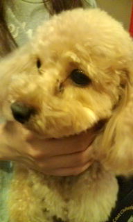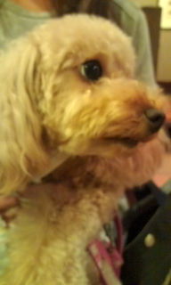 ティーカップ プードルのMO..ちゃん が 散歩の途中顔見せて カワイいのなんの…… やっぱりトイプードルより小ぶり、 ちっちゃいから このまま バッグに入れて 連れ帰って しまいたいくらい カワイイ、 U^エ^U また 寄ってね、