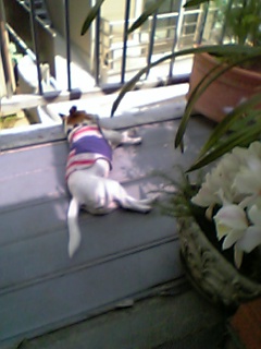 噛み犬ちゃちゃです。暑いのにわざわざ日向でウダー、ゴロン、そのくせハーハーゼーゼー、私は知りませんよ私は・。