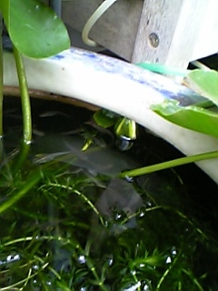 睡蓮のつぼみ。三つばかり見つけた。今年いくつの花が観られるか?-「蕾隠すメダカの群れに葉を間引く」・・・。オソマツ。